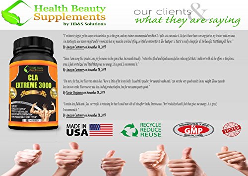 -. Binding : Health and Beauty -. Brand : HB&S Solutions -. EAN : 0650348990725 -. Feature : -THE MOST POWERFUL CLA EVER- Giving you NOT 1000mg,NOT 1250mg NOT 2000mg BUT A MASSIVE 3000mg DAILY! From The Makers Of The Best Garcinia Cambogia And Colon Cleanse Combo Comes The Next Step In Weight Loss And Muscle Building Supplements. Clinical Trails Gave Amazing Results And With Our CLA You Know That You Have The Absolute Best / -THIRD PARTY TESTED CLA- Our Pure CLA Beats Any Liquid Drops, Capsules, Pills And Tablets, HANDS DOWN! When It Comes To Gym And Dietary Supplements You Need To Make Sure You Buy From And Established Brand. Make Sure You Choose The Best, Choose The Household Name (HB&S Solutions). Why Buy From Any Other Small Company Selling Products From China When You Can Choose Established Brand In The USA. Choose The United States, Choose HB&S Solutions / -HB&S SOLUTIONS-Our CLA Complex Is The Most Powerful CLA Weight Loss Dietary Supplement EVER MADE. With Amazing Results, A Proven Track Record And A 100% Money Back Guarantee You Have Nothing To Lose Except For The Weight You Want To Shake Off! Get The Best Results With A Balanced Diet. Top Rated 5 Star / -PROVEN PRODUCT-CLA (conjugated linoleic acid cla) Is One Of The Best Proven Weight Loss Supplements EVER! CLA Is Your Proven Weight Loss And Muscle Building Aid And Will Give You The Extra Edge On The Road Of At The Gym / -XL COUPON DEALS-Get 10% Off When You Double Up to 180 Capsules&15% Off When you Buy 4-360 Capsules &20% Off When You Buy 5. -. IsAdultProduct : 0 -. Label : HB&S Solutions -. LegalDisclaimer : Results vary from person to person. These statements have not been evaluated by the Food and Drug Administration. This product is not intended to diagnose, treat, cure or prevent any disease. The content is not intended in any way as a substitute for professional medical advice, diagnosis or treatment. Always consult your physician other qualified health care provider before making any dietary changes or starting any nutrition, weight control or exercise program and never disregard professional medical advice. HB&S Solutions is a registered brand on amazon the only company to sell HB&S Solutions products on Amazon. -. Manufacturer : HB&S Solutions -. ProductGroup : Health and Beauty -. ProductTypeName : HEALTH_PERSONAL_CARE -. Publisher : HB&S Solutions -. Studio : HB&S Solutions -. Title : -EXTREME WEIGHT LOSS- Most Powerful And Proven Weight Loss Dietary Supplement. CLA 3000 -. UPC : 650348990725