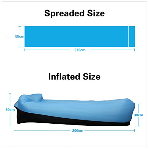 Portable design: This air sleeping bag can be taken to anywhere anytime; specially suitable for camping hiking, beach swimming, outdoor BBQ, parks, backyard; You can use it as an inflatable bag, air hammock, air bean bags, cloud lounge, lazy bag, air filled lounger, air sofa, etc