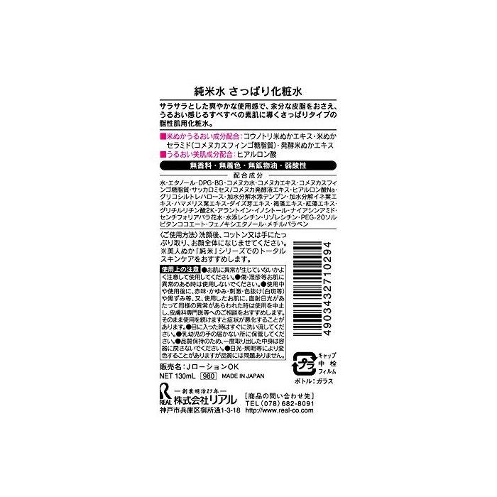 원본상품명: 美人ぬか 純米水 さっぱり化粧水 130mL
