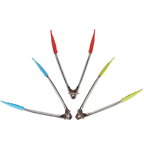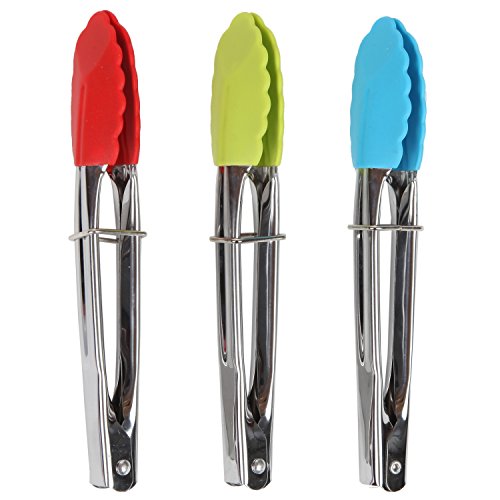 Product Description Stainless steal tongs features bright heat resistant silicone tips to easily grasp food. Great for use with non stick cookware. Dishwasher safe. Set of 3, include green, blue, and red. 0