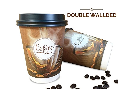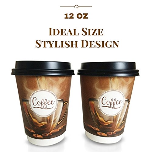 Disposable paper coffee cups with lids 12oz double walled sturdy stylish design 25 count no leaks