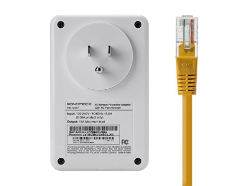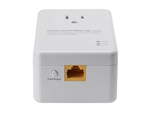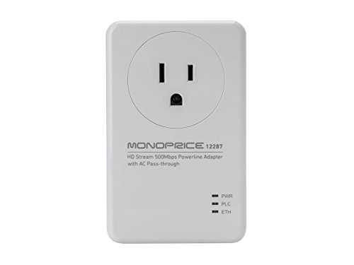 Monoprice Ethernet Over Power - HD Stream 500Mbps Powerline Adapter with AC Pass-Through (112287)