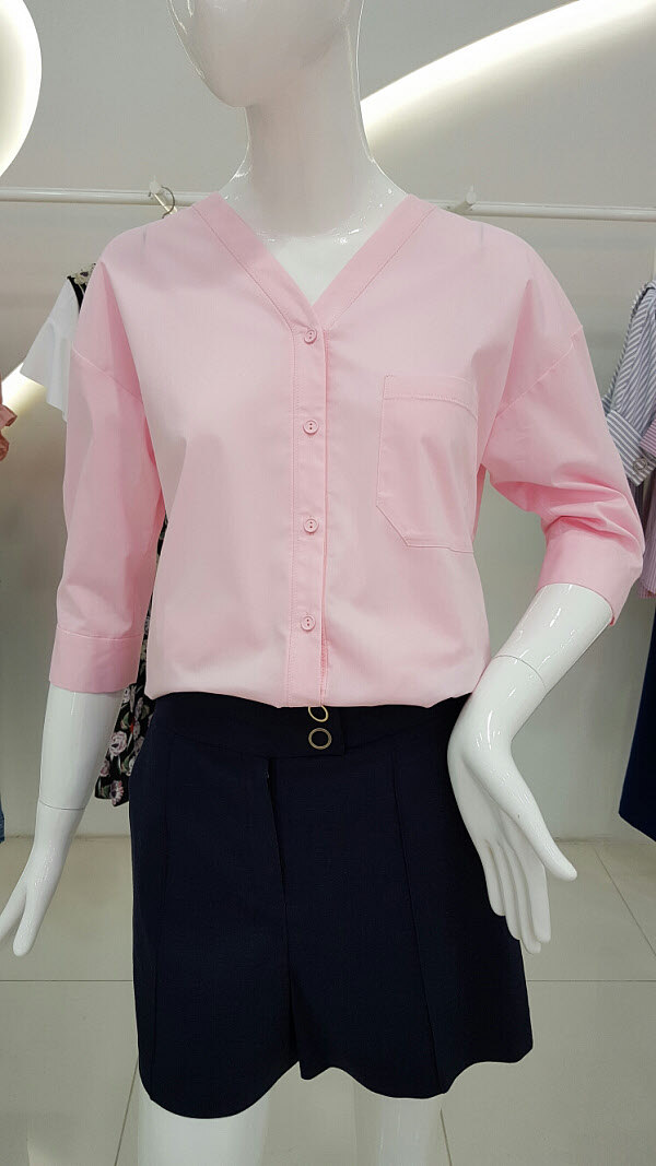 브이넥에 7부소매 셔츠예요깔끔한 화이트와 핑크 두가지 컬러이며 때론 정장에 때론 청바지와 반바지에 매치시켜 세련미와 깔끔함을 줄수있는 아이템입니다넣어서 깔끔하게 연출할수있고 빼서입으면 도시적인 멋스러움을 주는 제품입니디ㅣ