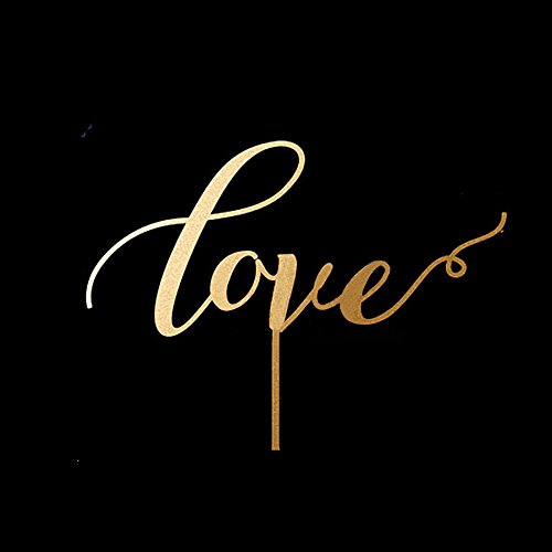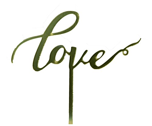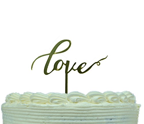 Love Gold Acrylic Cake Topper by Kiara - great for Wedding, Bridal Shower, Engagement Party, Renewing Vows (Love A)