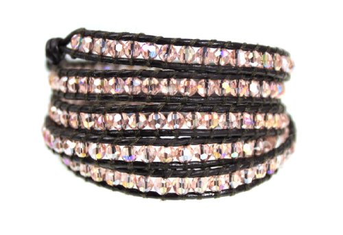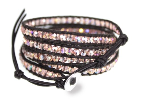 -. Binding : Jewelry -. Brand : Beautiful Silver Jewelry -. Department : womens -. Feature : Quality Brown Leather Wrap Bracelet in Extra Long 39 Inch Length Wraps 5 Times Around Wrist / Our "Monaco" Design Has Sparkling Light Peachy Pink Color Iridescent Faceted Glass Beads That Really Catch The Light / Adjustable Loops & Silvertone Button Closure / Wear As A 5x Wrap, Looser As A Bangle Bracelet - Can Also Be Worn As An Anklet With Sandals Or As Boot Jewelry / Organza Bag & Linen Foil Gift Box - Ready To Send or To Give -. Label : Beautiful Silver Jewelry -. Manufacturer : Beautiful Silver Jewelry -. ProductGroup : Jewelry -. ProductTypeName : FASHIONNECKLACEBRACELETANKLET -. Publisher : Beautiful Silver Jewelry -. Studio : Beautiful Silver Jewelry -. Title : Monaco Iridescent Pink - Peach Sparkling Bead and Brown Leather 5x Wrap Bracelet in Gift Box
