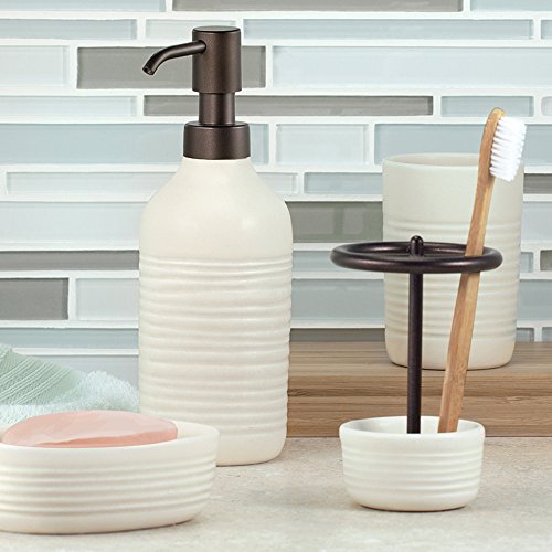 - CLASSIC CHARM: Natural ceramic 12 oz. soap dispenser with understated textured ridges.