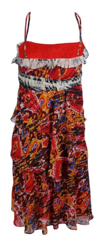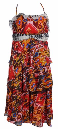 Studio : Nine West Publisher : Nine West Binding : Apparel Product Description This boho chic Nine West dress features full lining, concealed side zipper, hook eye closure, adjustable spaghetti straps, empire waist, tiered skirt, below knee length, ruffle trim, tribal print, and chiffon fabric. 0