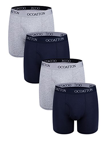 -. Binding : Apparel -. Brand : OCOATTON -. Department : mens -. Feature : True to fit US standard size.Please refer to the size chart before you purchase. / Tag P.R.Inted on the inside back avoids friction / Premium fabric lightweight and soft; opening fly in the crotch to make you breathable;1.38 inch logoed elastic waistband doesn't slip down and hold their shape / No ride up,few shrink, few loosen up,few saggy. Maintain their shape throughout the day than regular cotton.Legs staying down under clothing ensures all day comfort / Breathe Freely,Comfortable and Absorb Sweat.Soft again skin and good to sport performance and daily wear. -. IsAdultProduct : 0 -. ProductGroup : Apparel -. ProductTypeName : UNDERWEAR -. Title : OCOATTON Men's Underwear Comfortable Cotton Boxer Briefs With Front Fly 4-Pack