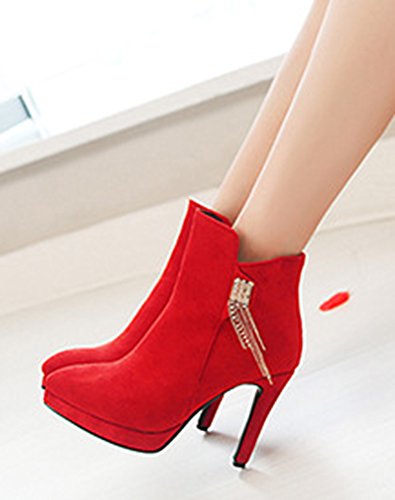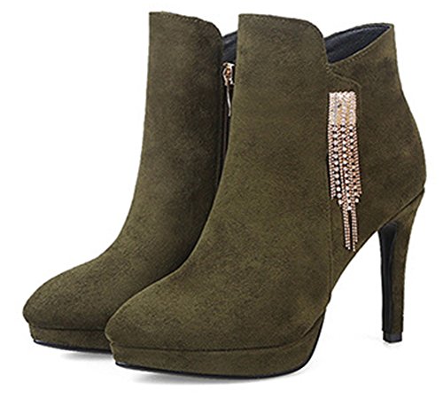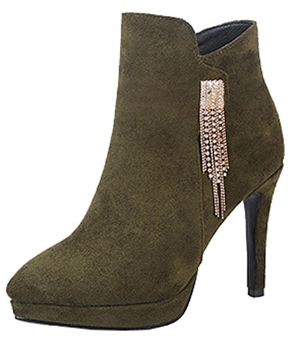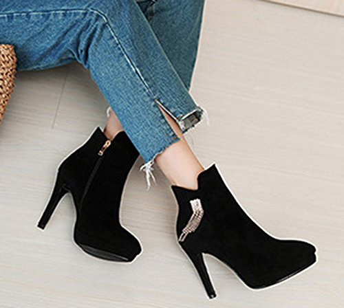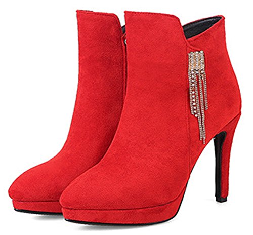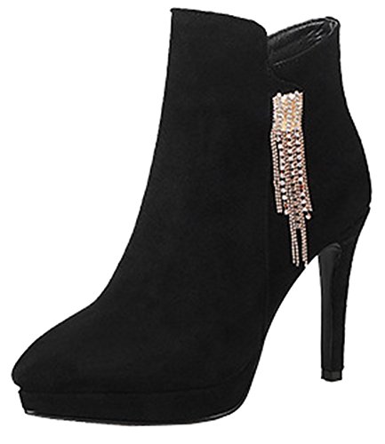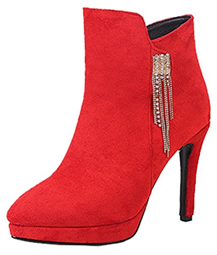 Binding : Apparel Product Description This pair of shoes is for women, girls, brides and young ladies. You will look elegant and stylish. The heels measure 3.9 inches. You will look slimmer and slender in their high heels. This pair of shoes features solid upper and ankle high. The design of pointed toe will make you sexy. You will look chic in their metal decoration. It's convenient for you to wear in their zipper closure. The sole is made of good rubber. You will feel comfortable in their soft bottom. They are of high quality and durable. Come on and take them away! 0