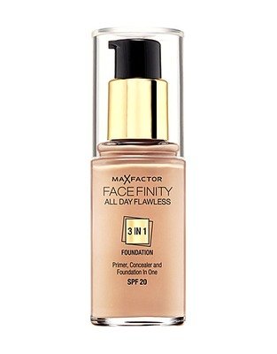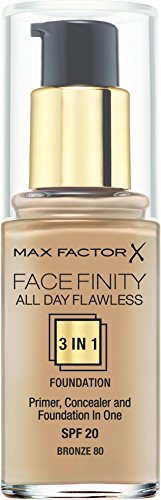 Facefinity all day flawless 3 in 1 foundation spf20 no. 77 soft honey lasts all day, giving a flawless finish. Primer gives a smooth base for hold. Concealer corrects for a flawless look.Feature
