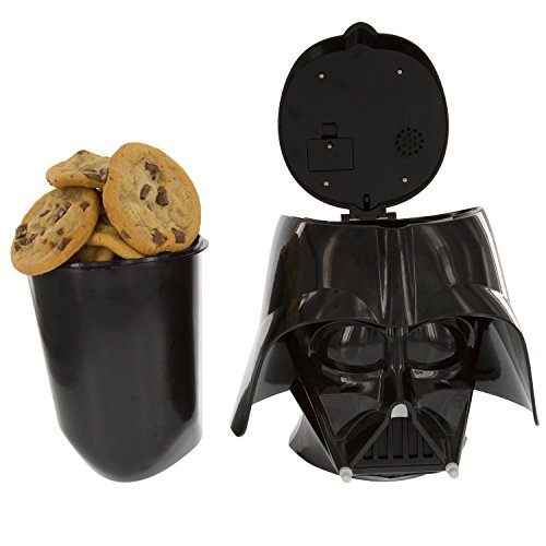 Studio : Underground Toys Publisher : Underground Toys Product Description Calling all foodies from the frozen tundra of Hoth to the forest swamps of Dagobah, this Star Wars Darth Vader Helmet Cookie Jar with Sound is an elegant kitchen storage container from a much more civilized age! Modeled on the iconic helmet of fan-favorite Dark Lord of the Sith, Darth Vader! Made of plastic, this cookie jar will make sounds from the movies when closed or opened. This fun and functional cookie jar is a must-have for any Star Wars fan or collector! There's been no better time to join the dark side, they have chocolate chip cookies for your blue milk! 0