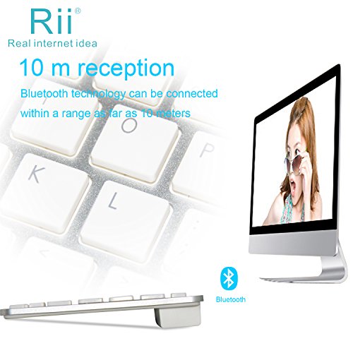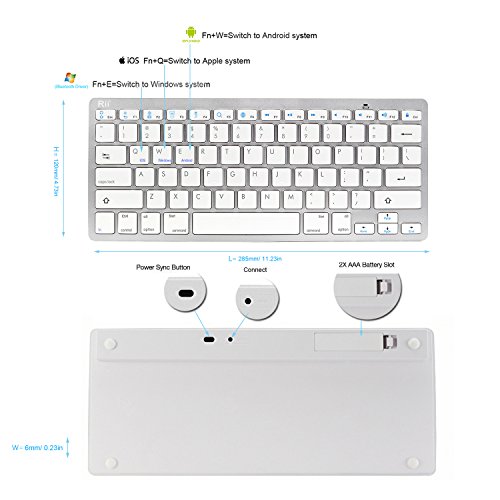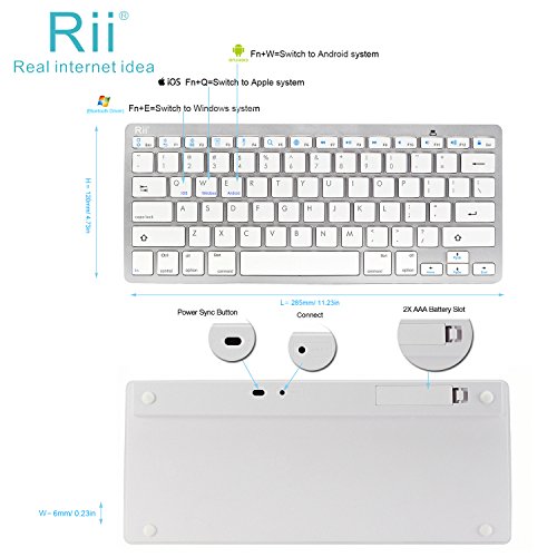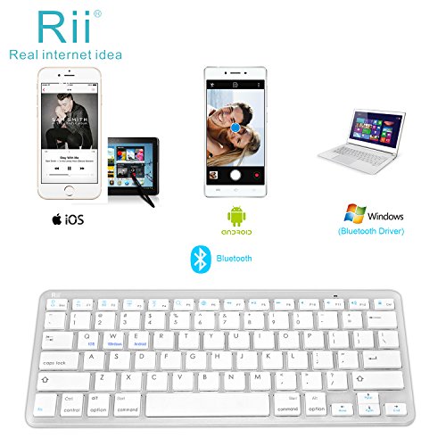 Rii BT09 Ultra Slim Lightweight Mini Wireless Bluetooth Keyboard For iOS Android Windows Devices iPad Mini, iPhone MacBook, Tablets PC Samsung Galaxy Android Smart TV Box (White,US)