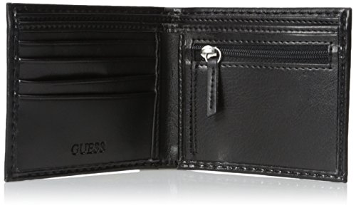 Guess Sedona front pocket men's wallet has an embossed logo on the front, giving the wallet a sleek and modern look. Includes a gift box. Wallet dimensions are 3.5 x 4.5 . Interior features 4 credit card slots, 2 hidden pockets, 1 zipper pocket and 1 bill pocket with divider.Feature