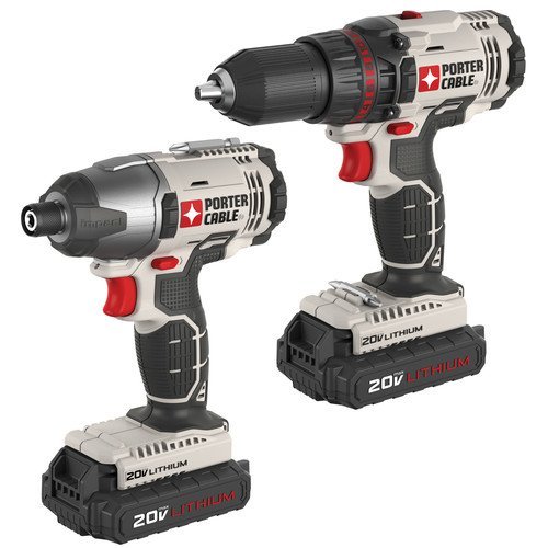 The PORTER-CABLE PCCK604L2 20V MAX Lithium Ion 2-Tool Combo Kit includes a 20v Drill/Driver and a 20v Impact Driver. The Drill/Driver features 283 Units Watts Out, two speed gear box (0-350/0-1,500), compact design (8.25" long/3.5 lbs) and 1/2" metal ratcheting chuck. The Impact Driver features 1450 in/lbs of torque, 0-2,800 RPM, 0-3,100 BPM, compact design (6.9" long/3.3 lbs) and a one handed easy load 1/4" hex chuck. Both tools are powered by a 20v Max Lithium Ion battery and both tools have a battery gauge that displays charge remaining in the battery. The 20V Max Lithium Ion batteries feature 1.3 amp/hour cells each which delivers more power and runtime in a smaller package. These tools are designed for applications such as: Metal Drilling, Wood Drilling, Decking Screws, Drywall Screws, Lag Screws, Lag Bolts. This kit includes: (1) PCC601 Lithium Ion Drill/Driver, (1) PCC641 Lithium Ion Impact Driver, (2) PCC681L Batteries, (1) PCC691 Standard Charger, (1) Standard Small Kit Bag, (1) Double Ended Screw driving Bit and (1) #2 Phillips Bit Tip.Feature