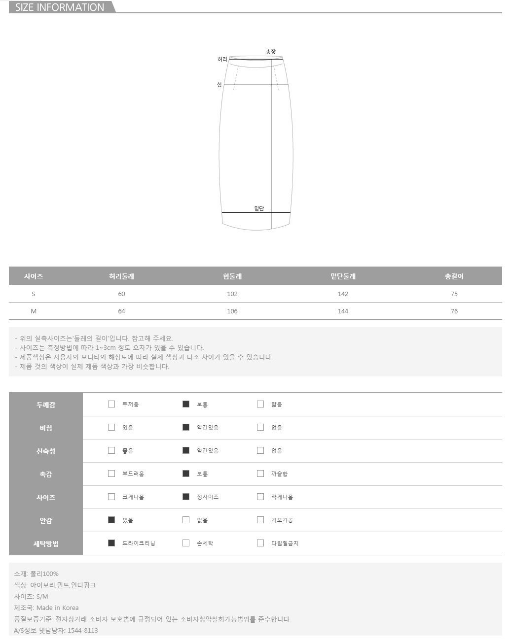 모델의 착용 컬러는 아이보리/S 입니다.