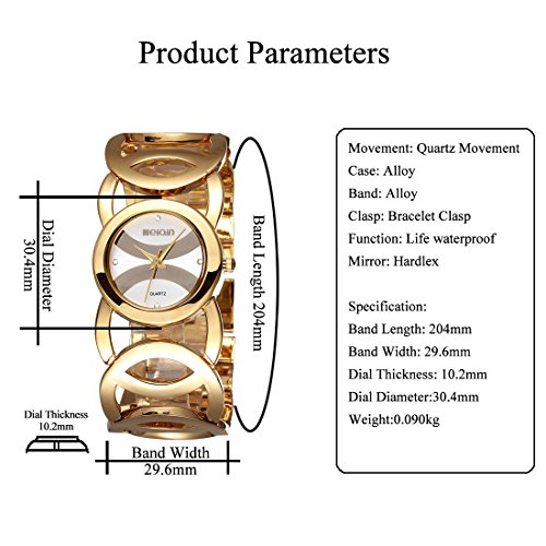 FEATURES:New fashion design exquisite and beautiful,suitable for casual and business use,and suitable to use as a wristwatch or dressing bracelet; Hardlex watch window,protect from scratch; Imported movement with a long working time;3ATM life water resistant;