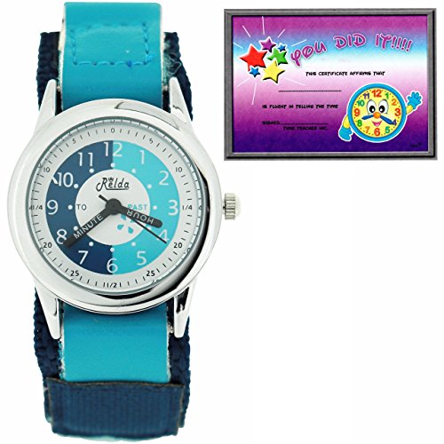 A simple and fun childrens analogue watch by Relda, this is a no-frills watch that functions to a high capacity, serving any child well for every day use.