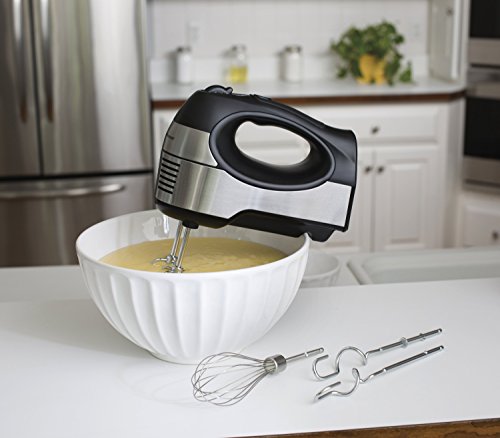 Mix and whip with power, convenience and comfort with the Hamilton Beach 6 Speed Hand Mixer With Quick Burst. With a soft-grip handle for easy use and three mixing attachments, this versatile mixer is your go to appliance for blending, creaming, kneading and folding.