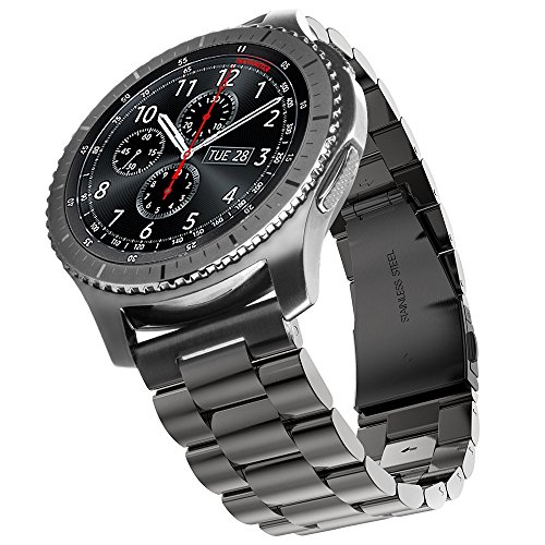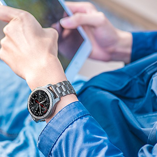 【Top Quality Material】The Gear s3 band is consists of premium 316L Solid stainless steel which are polished by a number of processes and colored by vacuum plating. it is more useful to corrosion-resisting, and will never get rusty. Compared to rubber band, this stainless steel watch band has better breathability and prevents you from allergy.
