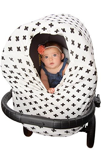 Stretchy Baby Car Seat Cover Canopy with Snaps Multi-use Nursing, Shopping Cart, & High Chair Cover 4 in 1 Design "Cross" Super Soft, Breathable Fabric...
