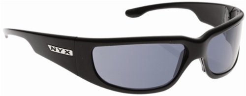 ReleaseDate : 2010-09-01 Studio : NYX Publisher : NYX Binding : Eyewear Product Description NYX Talon Style Sunglass Black Frame with Gray Polarized Lens. Technologically advanced injected polarized lenses provide crisp clear vision while the full face coverage frame draws down from the temples for protection against glare and wind. Highest quality polarized lenses provide crisp clear vision while providing 100% UVA/UVB protection. Toric lens design give smooth clean lines. Comes with case and cleaining pouch. 1 year limited warranty. Made in France. 0