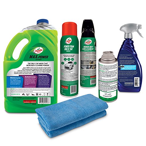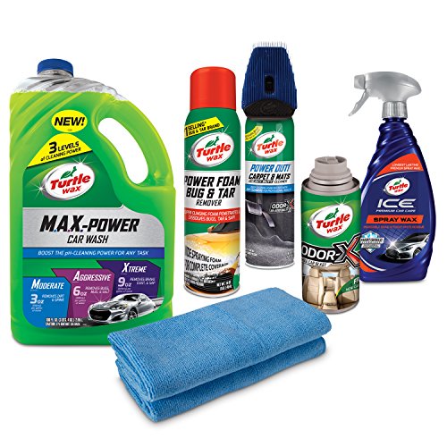 The Ultimate RV & ATV Heavy Duty Cleaning Kit provides the cleaning power you need after a long camping or off-roading trip. The 7-piece kit includes all of Turtle Wax's heavy duty cleaning formulas and two premium microfiber towels to make cleaning convenient. M.A.X.-Power Car Wash is the only car wash with three levels of cleaning power. Add more M.A.X-Power for a higher pH cleaner to remove heavier dirt and grime. The Bug & Tar Power Foam Aerosol easily removes bugs, tree sap, and bird droppings from driving on the open road. ICE Spray Wax is a premium spray wax that restores shine and protection for in between trips and rides. Remove mud, dirt, and food stains with Power Out! Carpet & Mats Heavy Duty Cleaner. The detachable micro scrub brush makes cleaning hard-to-reach surfaces easy and removes the toughest messes. After a long trip, use the Odor-X Whole Car Blast to remove odors everywhere they hide for up to 30 days. Exclusive Odor-X technology seeks and destroys odors at the molecular level and the whole car blast leaves behind a Fresh New Car scent.Feature