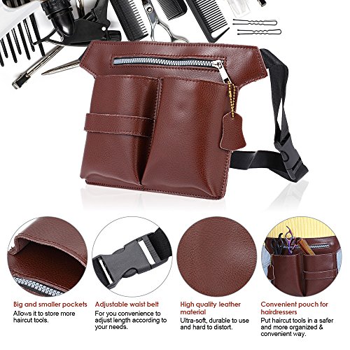 Anself Leather Hair Scissor Holster Hairdressing Pouch Haircutting Tools Holder Bag for Hair Stylist Waist Shoulder Belt