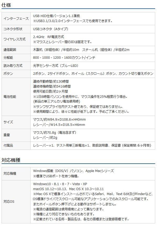 かぶせもちに最適なワイヤレスマウスです。赤色の光学式より感度の高いブルーLEDを搭載し光沢感のあるデスク面でもマウスパッドなしでスムーズな操作が可能です。