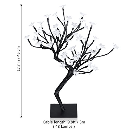 PERFECT ORNAMENT- This 6FT lighted cherry tree has 220 LEDs lights which makes it an sparkling blossom tree. Bonsai style design makes it beautiful on the desk or table.