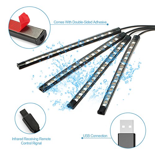 - ★INSTALLATION: An easy way to install it in your car, no need to modify the wiring,simply peel off the double-sided tape behind each strip and apply the LED strips under the seats or in the footwell area. It is usb port,you can install on anywhere with usb charger,power bank and PC.