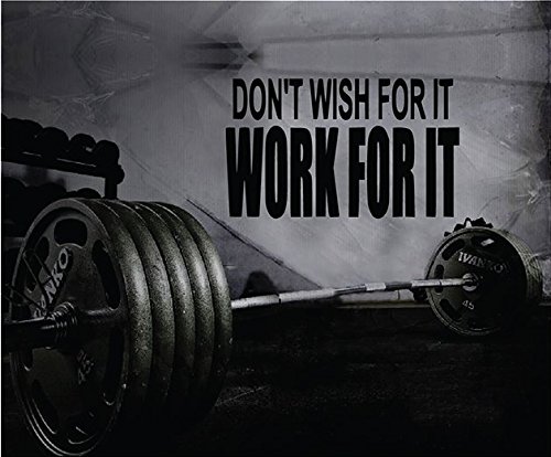 Gym Wall Decal - Fitness Motivation Wall Decal For Home Gym - Inspirational Exercise Wall Sticker - Don't Wish For It Work For It (16h x 27w)