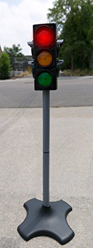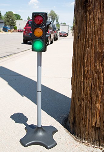 Kids will love this 4-way traffic signal including traffic and crosswalk lights and sounds! There are traffic lights on the front and back and pedestrian crossing signs on each side for extra play value. A fun, interactive way to introduce kids to road safety awareness. Lights change color on your choice of automatic or manual settings. Auto shut off when not in use. Wide, stable base. A perfect companion for any ride on vehicle, trike or bike, Approximately 28.3" tall, 9.65" wide at base. Requires 3x AAA batteries (not included). Ages 3+Feature