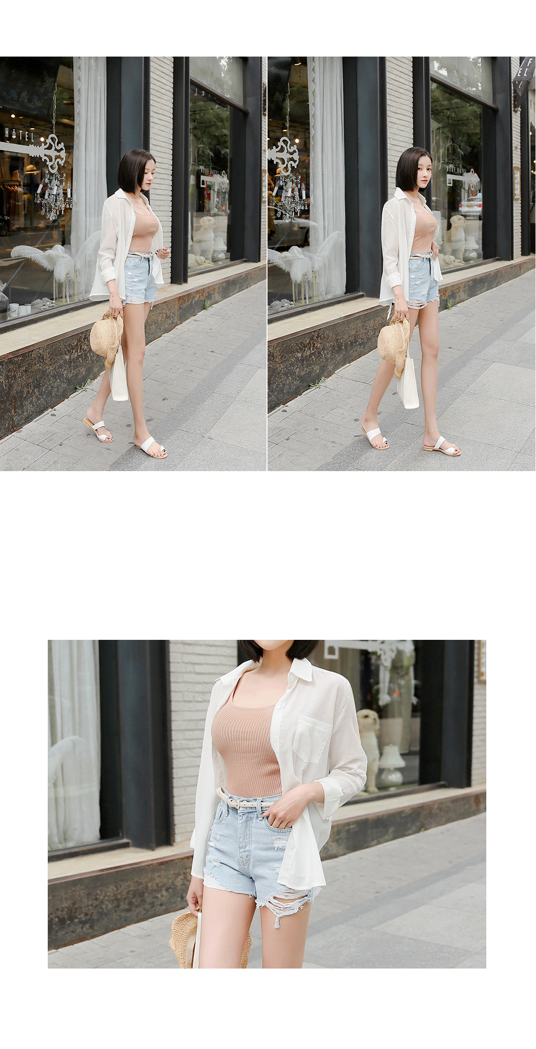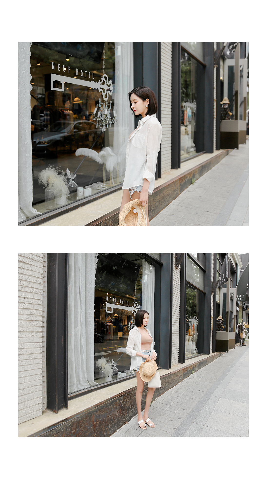 여름에 알맞은 시원한 소재와 롤업을 할 수 있는 셔츠 아이템을 소개해드릴께요~^^ 베이직하고 심플한 디자인으로 아우터나 탑 스타일로 다양하게 활용할 수 있는 셔츠 아이템이랍니다~ 자칫 밋밋할 수 있는 디자인이지만 프론트 왼쪽에 포켓을 더해주어 캐주얼하면서 스타일이 돋보이는 코디룩을 연출해드려요~ 베이직한 디자인으로 팬츠,스커트 등 다양한 아이템들과 코디매치할 수 있는 실용적인 셔츠 아이템을 적극 추천해드려요~