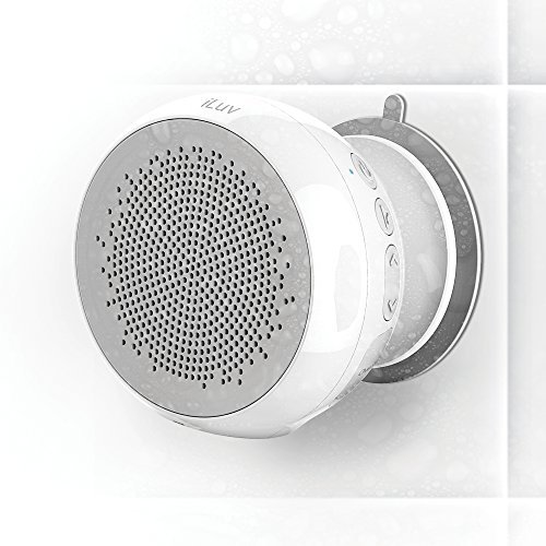 Aud Shower by iLuv, Portable Water Resistant Rechargeable Bluetooth Shower And Pool Speaker with Hands-Free Phone Capabilities For Fishing And Boating (White)