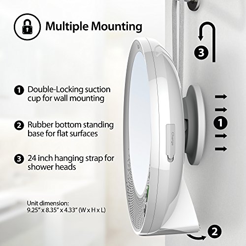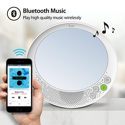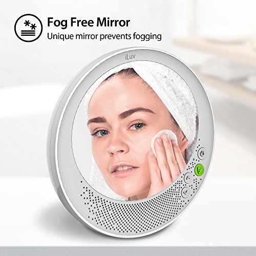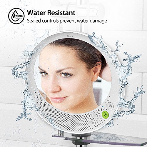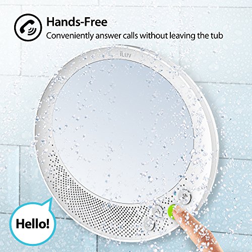 iLuv, Wireless Bluetooth Shower Speaker w/ Anti-Fog Free Mirror( 6.2”x 5.3”) Build-in Mic for Hands Free Function, Included Suction cup, Flexible strap & Stand-iPhone, Android.