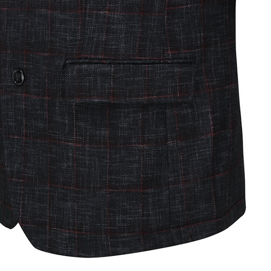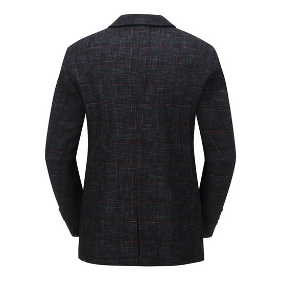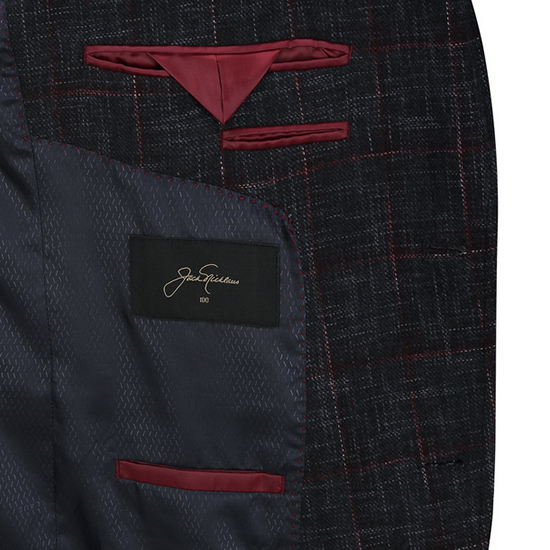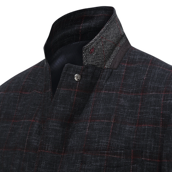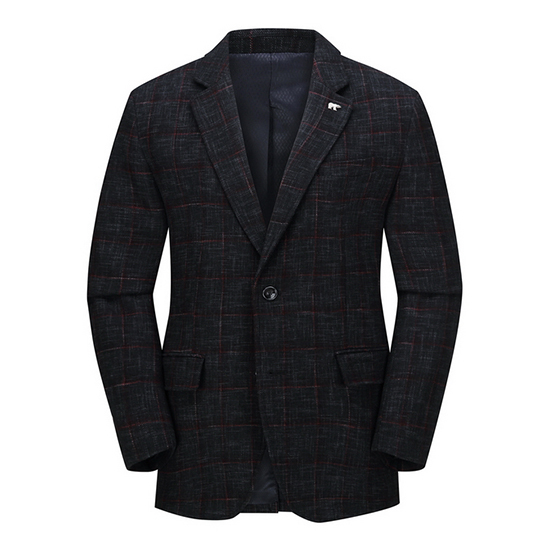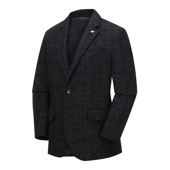- 체크 조직 디자인을 적용한 남성 자켓.