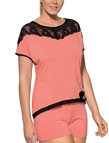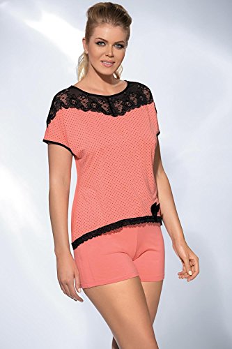 -. Title : Ava PJ-17 Schlafanzug Pyjama Dame Set Gstert Kurzarm Nachtwäsche U-Boot-Ausschnitt EU