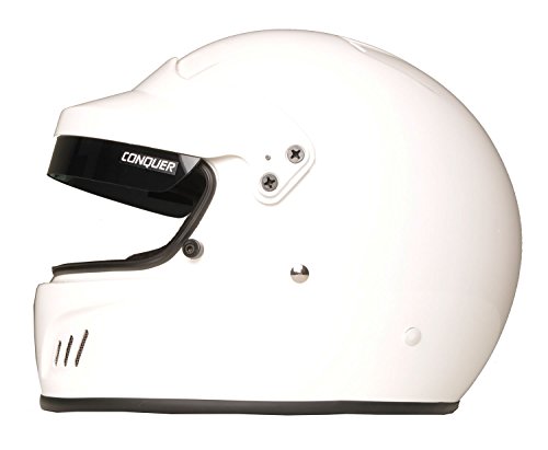 Conquer Full Face Rally Racing Helmet is SA2015 certified and a great all purpse racing helmet. Ten vents provide amazing air flow-stay comfortable during the race! Good visibility and a short visor with sun screen will help keep the sun out of your eyes. Conquer helmets are approved by Snell for all major racing associations.