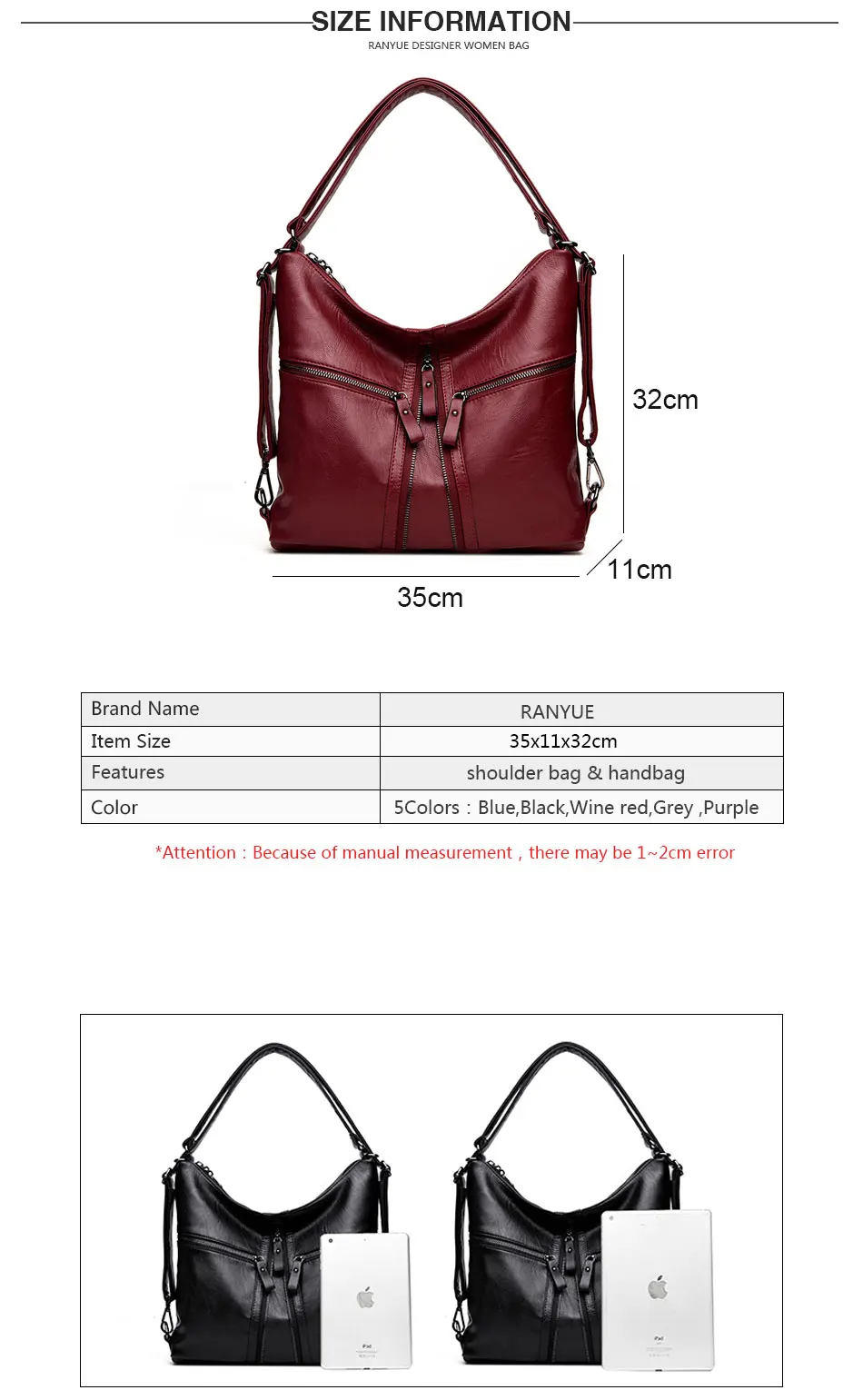 Hobos Women Bag Double Shoulder Bags:Soft Pu Leather Bags Women handbags