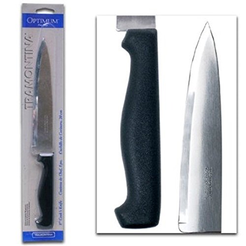 8" Tramontina Optimum Cook's Knife has stainless steel blade. Knife needs no sharpening and the edges are serrated. Dishwasher safe!