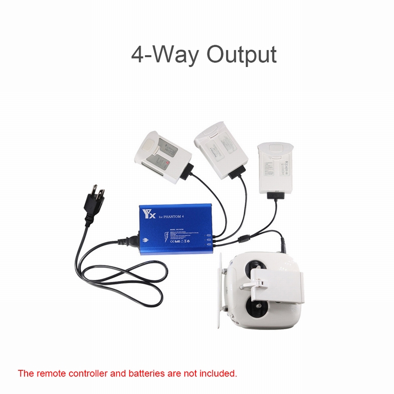 4 in 1 charger, specially designed for DJI Phantom 4 Quadcopter. Can charge 3 batteries and one remote controller at the same time. Made of high qualityanodizing aluminium alloy which is strong and good for heat dissipation. Must-have for Phantom 4 owners.