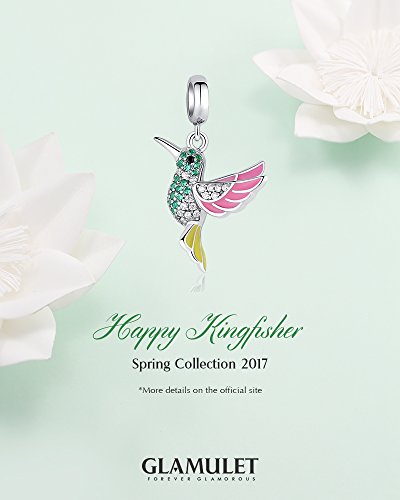 Glamulet 925 Sterling Silver "Happy Kingfisher" Dangle Charm Fits Charm Bracelets and Necklaces
