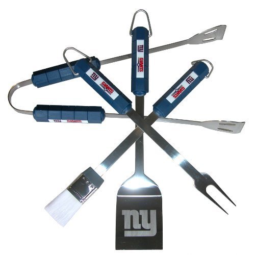 ReleaseDate : 2010-06-02 Studio : Siskiyou Publisher : Siskiyou Binding : Lawn Patio Product Description Tailgating never looked so good! This stainless steel BBQ set is a perfect way of showing your team pride on Game Day. Each utensil is printed with your favorite NFL team's artwork. The set includes tongs, brush, fork and a laser etched spatula sporting the team's primary logo. 0