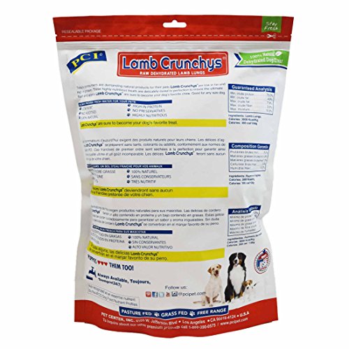 -. Binding : Misc. -. Brand : Pet Center, Inc. -. Feature : Lamb Crunchys dog treats by PCI / A highly nutritious and delicious treat for your dog / Delicately dried to perfection, low in fat and high in protein / Great for dogs of all sizes and ages / Proudly made in the USA -. Label : Pet Center -. Manufacturer : Pet Center -. PackageQuantity : 1 -. ProductGroup : Pet Products -. ProductTypeName : PET_SUPPLIES -. Publisher : Pet Center -. Studio : Pet Center -. Title : PCI 100% Natural Lamb Crunchys Dried Lamb Lung Dog Treats