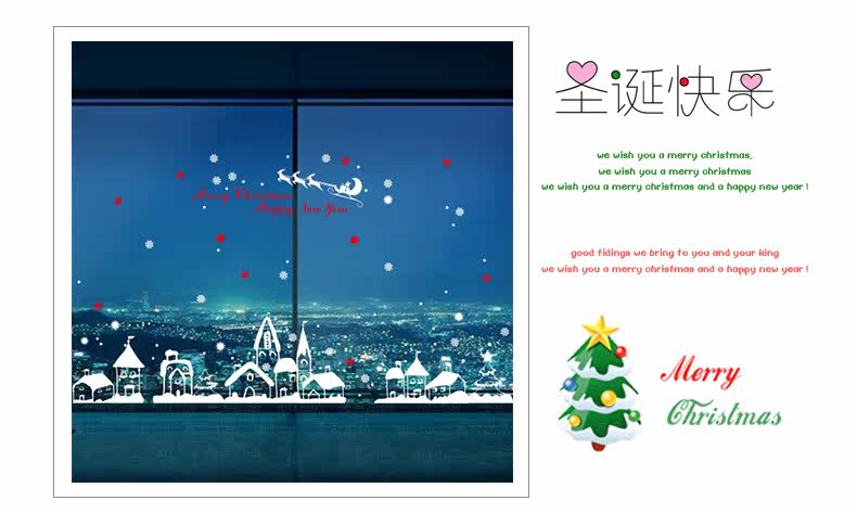 平安夜商场店铺橱窗玻璃装饰品圣诞节公司餐厅新年布置雪花贴画