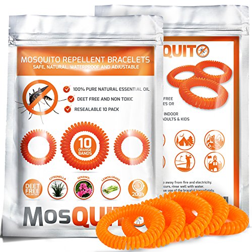 -. Title : MosQuitO Repellent Bracelets 10 pack - 100% Natural Ingredients Insect Repellent - Safe, Waterproof Pest Control with Citronella Lemongrass Geraniol - DEET FREE - Insect Protection for Kids & Adults