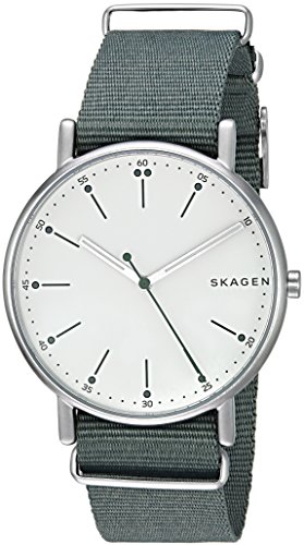 Skagen Men's Signature Stainless steel case, Nylon strap, White dial, Quartz movement, Scratch-resistant mineral, Water resistant up to 5 ATM - 50 Meters - 165 Feet