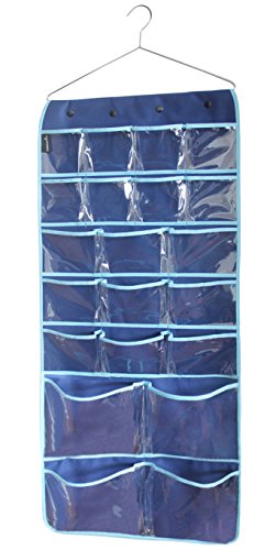 Misslo Hanging Closet Dual-sided Organizer Bra Underwear Socks Jewelry Storage 42 Pockets, Blue