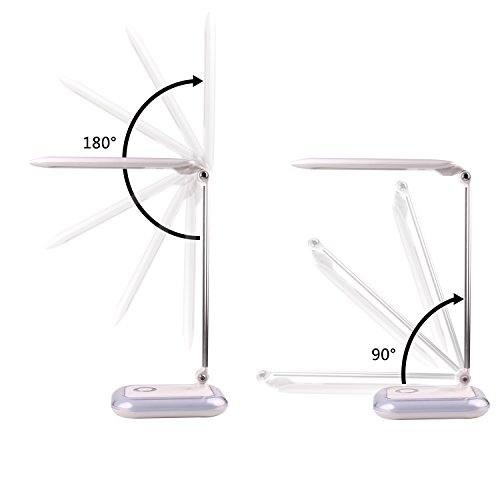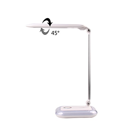 Flexible lamp arm and head: LED desk lamp with adjustable lamp arm and lamp head. The adjustable range of the lamp head: up-down 180 degrees, 45 degrees on the left and right direction. Adjustable range of the lamp arm: 90 degrees.