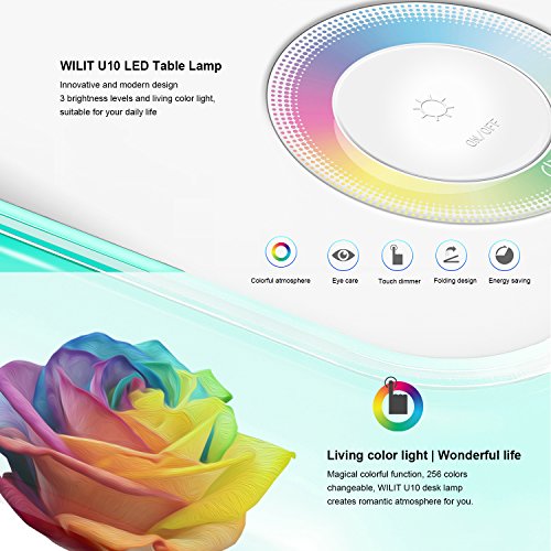 WILIT U10 11W Dimmable LED Table Lamp Features: - LED desk lamp with high sensitive touch control, easy to operate. The LED lamp provides 3-grade brightness and colorful atmosphere light, you can use it for work, study, reading and relaxing.